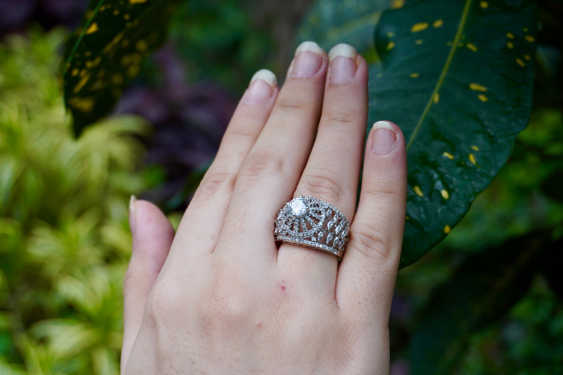 The Adjustable AD Ring showcases high-quality American diamonds arranged to enhance their natural sparkle. Designed with an adjustable band, it offers a customizable fit for comfort and versatility. This ring blends timeless elegance with practical wearability, making it a refined choice for both daily use and special events.