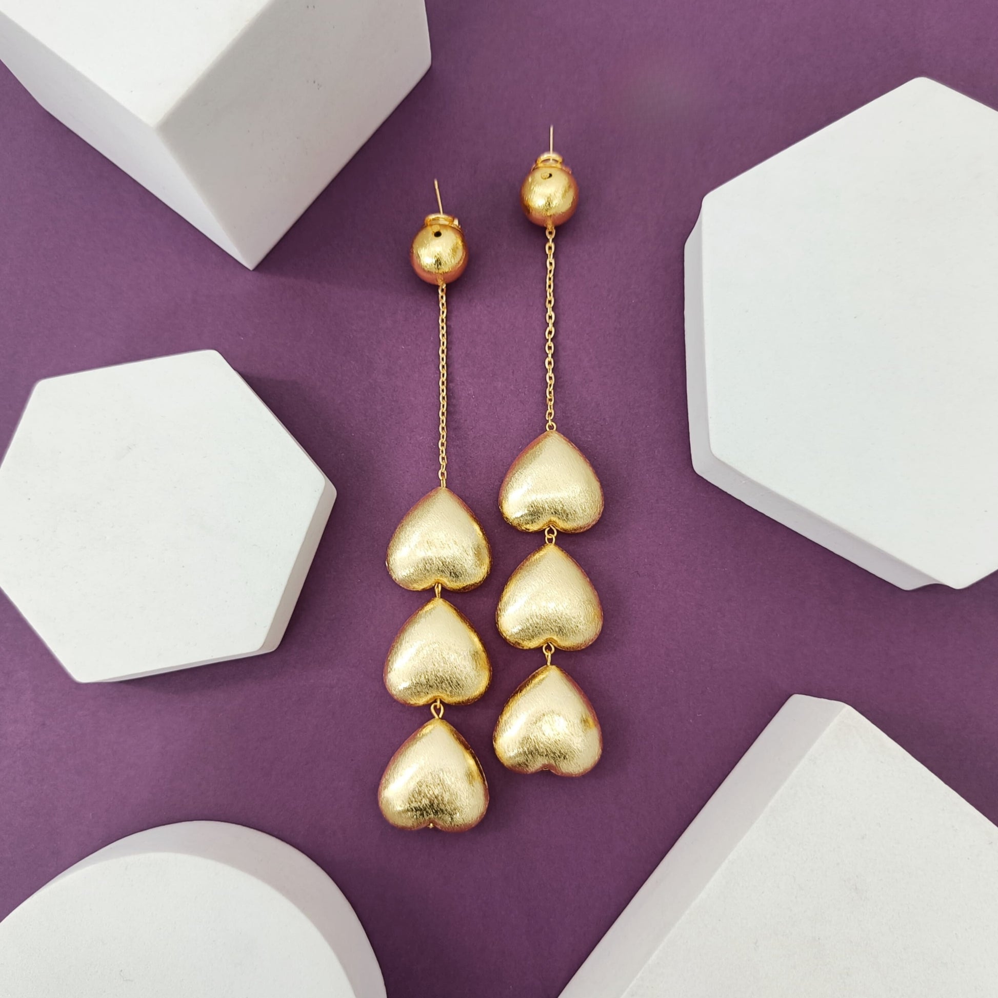 Elevate your accessory game with our exquisite Karen Heart Danglers. Crafted with precision and elegance, these gold earrings are designed to make a statement. The heart-shaped detailing adds a touch of romance and femininity to any outfit, making them the perfect choice for both casual and formal occasions. These danglers are a must-have addition to any jewelry collection, offering a timeless and sophisticated look that will never go out of style. Treat yourself or surprise a loved one with these stunning earrings that are sure to turn heads and garner compliments wherever you go.