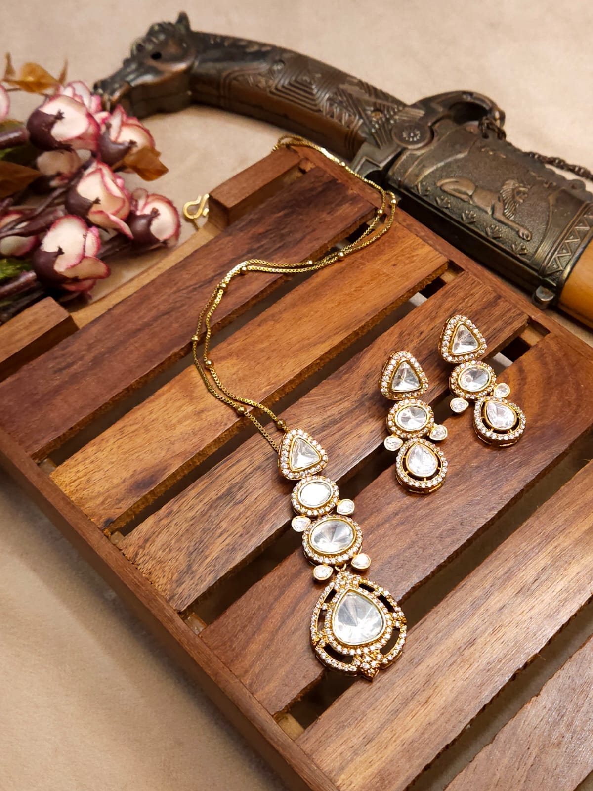 Crafted with high-quality Polki, this Premium Polki Pendant Set adds a touch of elegance to any outfit. The intricate design and superior craftsmanship make it a must-have for any jewelry collection. Elevate any look with this stunning pendant set and shine bright like a star.