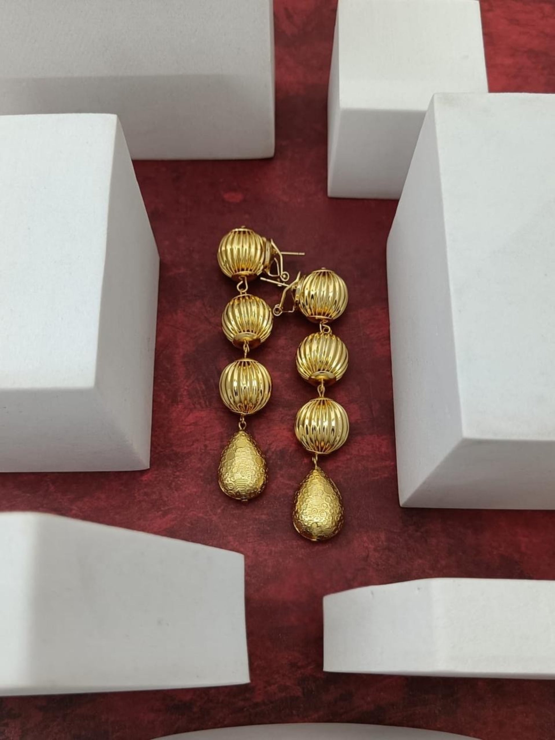 Elevate your look with the exquisite Zareen Earrings. Crafted with precision and elegance, these gold earrings exude sophistication and charm. The intricate design and luxurious finish make them a must-have accessory for any occasion. Whether you're dressing up for a special event or adding a touch of glamour to your everyday ensemble, the Zareen Earrings are sure to make a statement. Perfect for gifting or treating yourself, these earrings are a timeless addition to any jewelry collection. Embrace effortless style and grace with the Zareen Earrings.